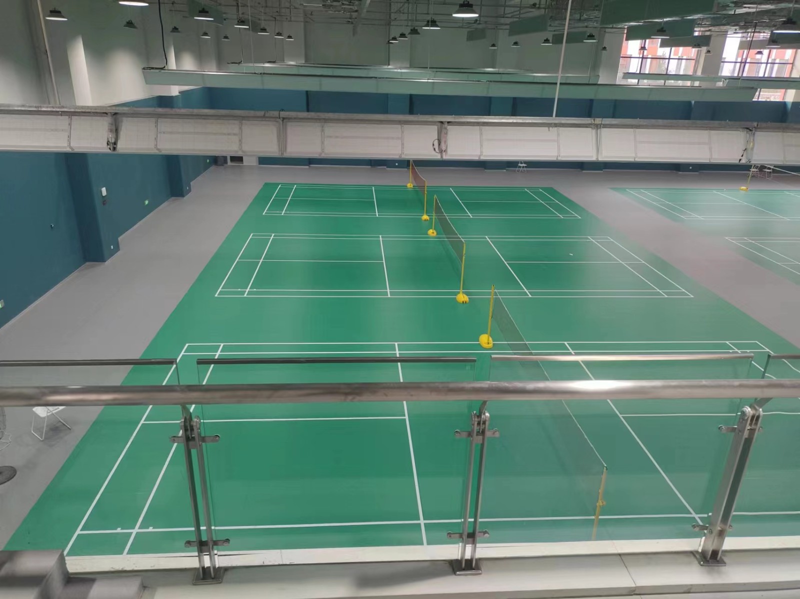 優(yōu)點(diǎn):這是最常用的羽毛球場(chǎng)地地板材料之一。PVC地板具有良好的彈性和耐磨性,能夠吸收沖擊,減少運(yùn)動(dòng)員受傷的風(fēng)險(xiǎn),并提供優(yōu)異的摩擦力,防止滑倒。此外,PVC地板還易于清潔和維護(hù)。